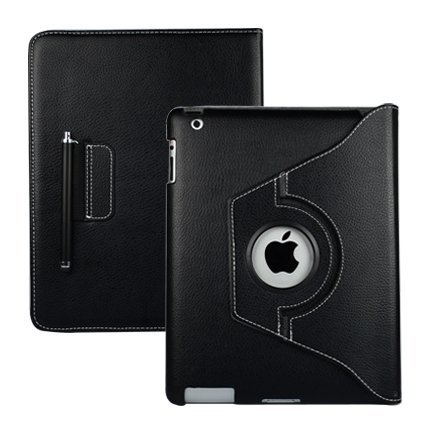 Ctech 360 Degrees Rotating (black) Leather Case Cover W/ Swivel Stand For IPad 3 / The New IPad (3rd Generation) /iPad 2 With Bonus Stylus, 4 Stand Positions (Supports Smart Cover Wake/Sleep Function) For Sale