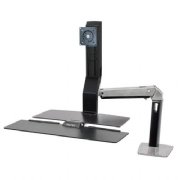 Ideal for corner workstations, the WorkFit-A clamps to the rear or side of most surfaces and enables an effortless sit-and-stand work style. Fold the keyboard up and swing the arm out of the way when you need your desk surface.