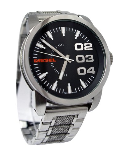Built from brushed stainless steel, this gents Diesel watch features a large black round dial with chunky baton markers and white tipped hands.