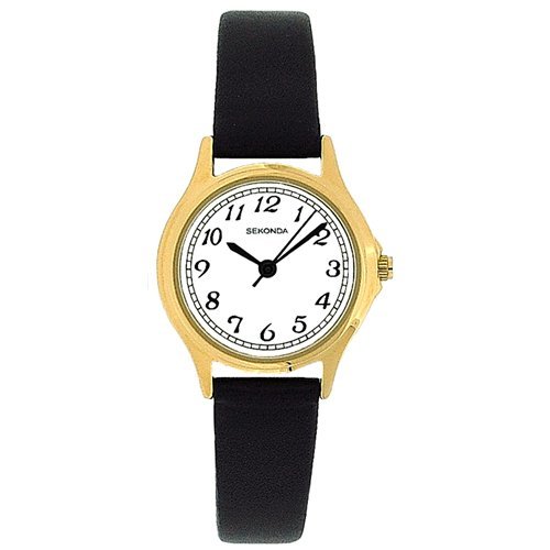 Sekonda Ladies Analogue Gold Plated White Dial Black Strap Casual Watch 4134 Reviews